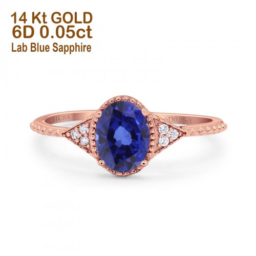 14K Rose Gold 1.16ct Round 6.5mm G SI Nano Blue Sapphire Diamond Engagement Wedding Ring Size 6.5