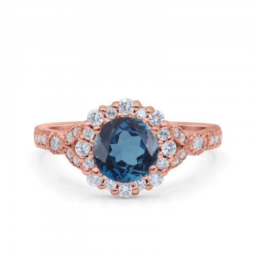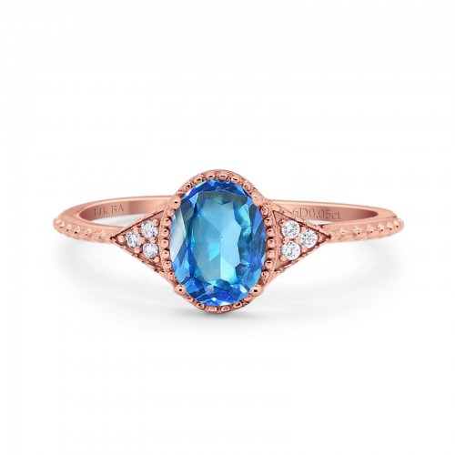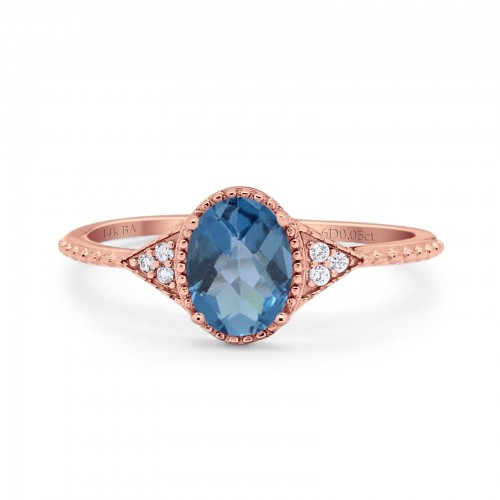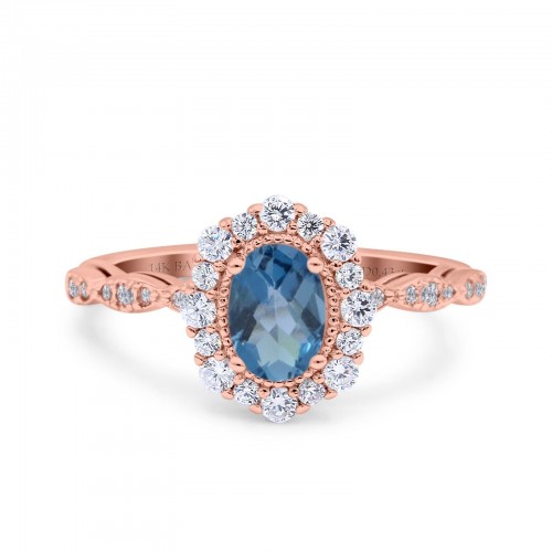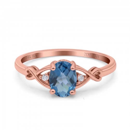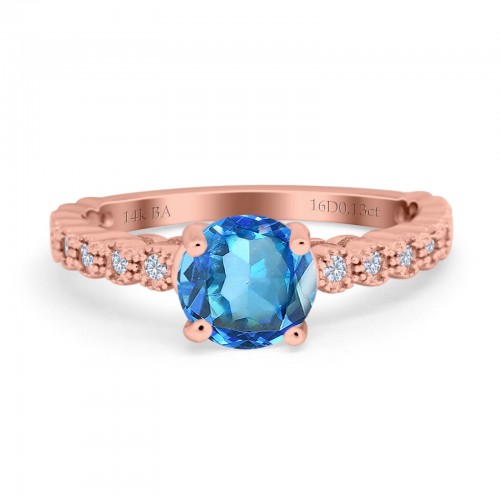 14K Rose Gold 1.16ct Round 6.5mm G SI Natural Blue Topaz Diamond Engagement Wedding Ring Size 6.5