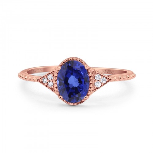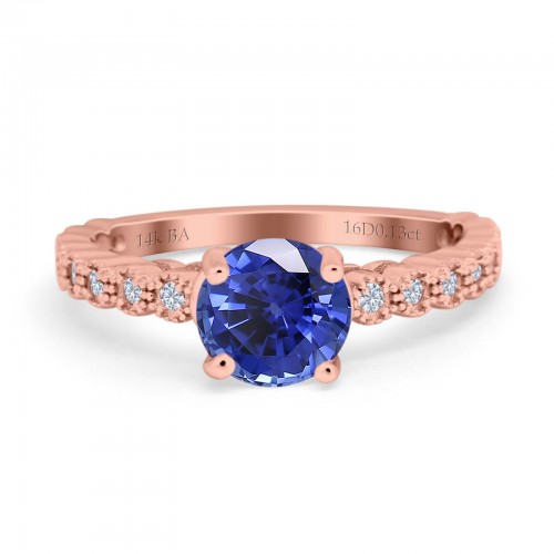 14K Rose Gold 1.16ct Round 6.5mm G SI Nano Blue Sapphire Diamond Engagement Wedding Ring Size 6.5