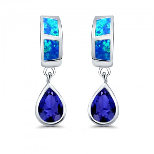 Pear Stud Earrings Lab Created Blue Opal Simulated Blue Sapphire CZ 925 Sterling Silver (23mm)