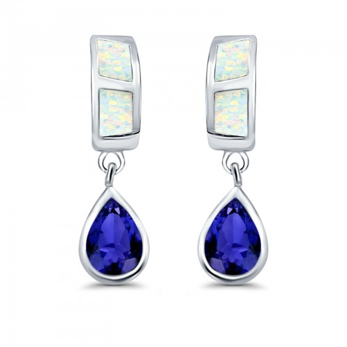 Pear Stud Earrings Lab Created White Opal Simulated Blue Sapphire CZ 925 Sterling Silver (23mm)
