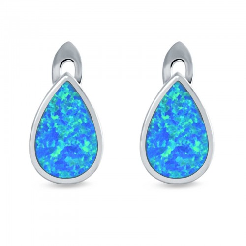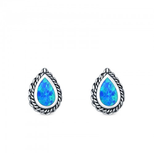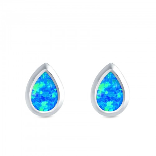 Pear Shape Stud Earrings Lab Created Blue Opal 925 Sterling Silver (6mm)