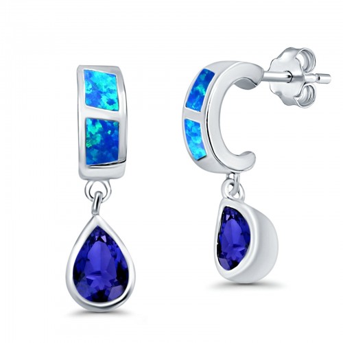 Pear Stud Earrings Lab Created Blue Opal Simulated Blue Sapphire CZ 925 Sterling Silver (23mm)