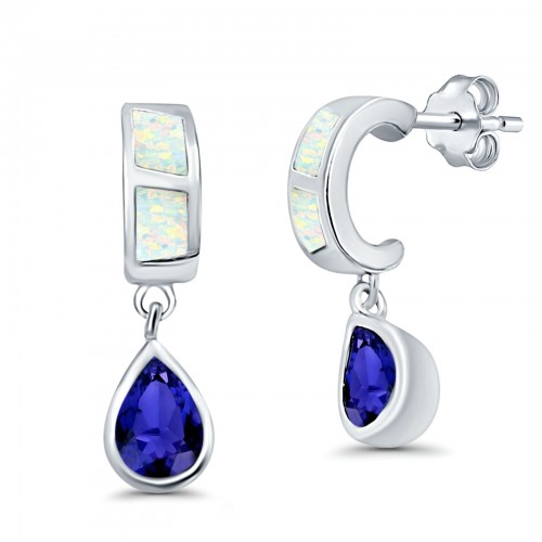 Pear Stud Earrings Lab Created White Opal Simulated Blue Sapphire CZ 925 Sterling Silver (23mm)