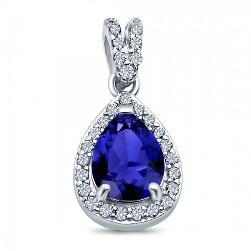 Pear Teardrop Earrings Simulated Blue Sapphire 925 Sterling Silver Wholesale 28.7mm