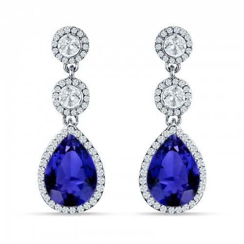 Pear Teardrop Halo Drop Dangle Earring Blue Sapphire CZ 925 Sterling Silver Wholesale 23mm