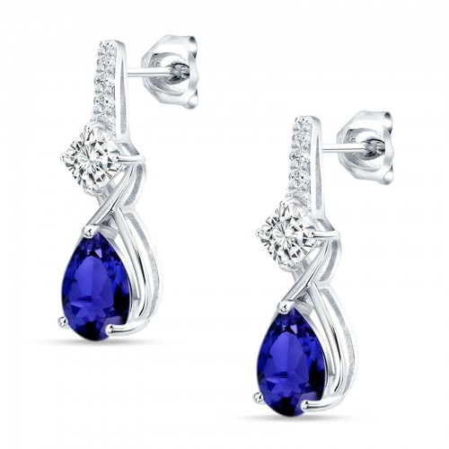 Pear Teardrop Infinity Stud Earring Blue Sapphire CZ 925 Sterling Silver Wholesale 17mm