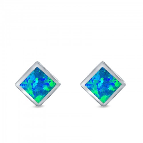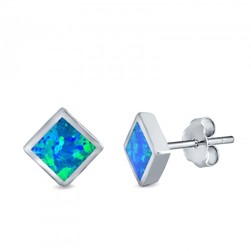 Princess Cut Stud Earrings Lab Created Blue Opal 925 Sterling Silver