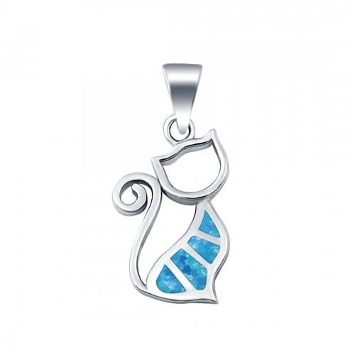 Silver Cat Lab Created Blue Opal Charm Pendant 925 Sterling Silver Original Design