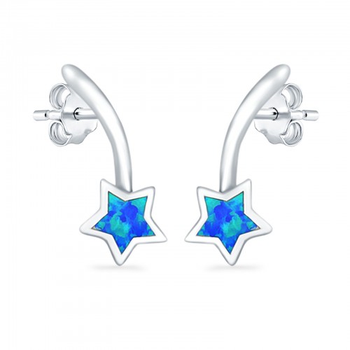 Shooting Star Stud Earrings Lab Created Blue Opal 925 Sterling Silver (13mm)