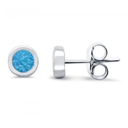 Solitaire Bezel Stud Earrings Round Lab Created Blue Opal 925 Sterling Silver(0.25mm)