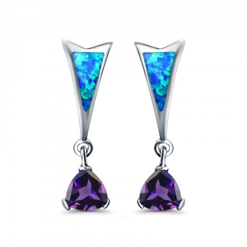 Stud Earrings Lab Created Blue Opal Triangle Simulated Amethyst CZ 925 Sterling Silver (25mm)