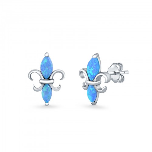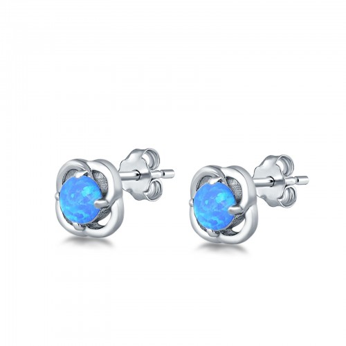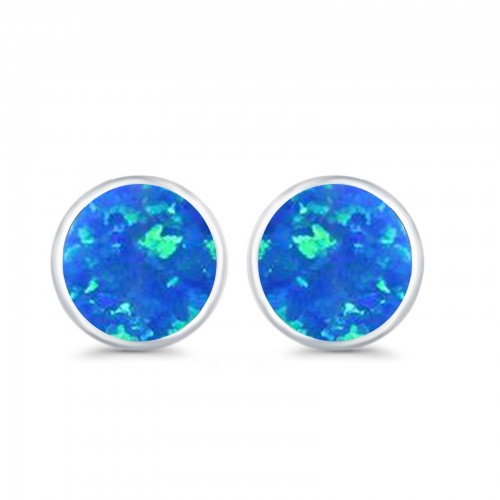 Stud Earrings Lab Created Blue Opal 925 Sterling Silver (6.5mm)