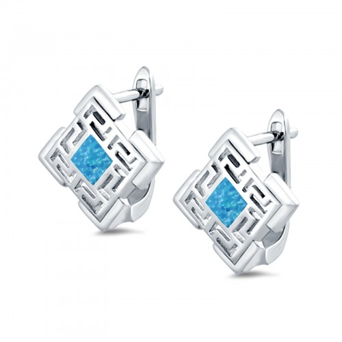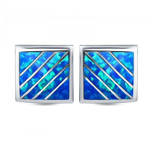 Stud Earring Square Shape Lab Created Blue Opal 925 Sterling Silver (13mm)