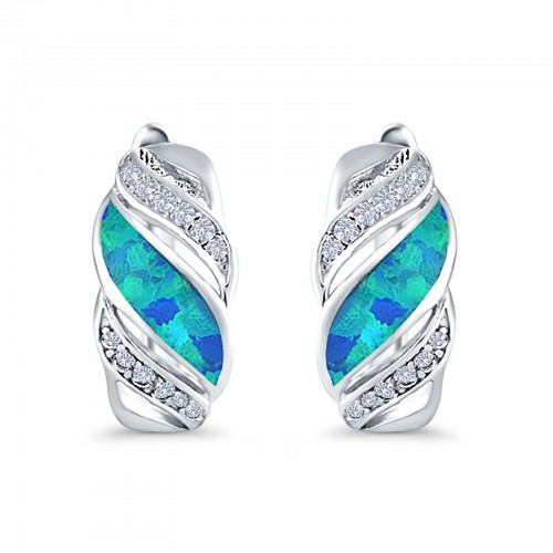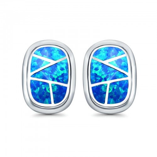 Stud Earrings Lab Created Blue Opal 925 Sterling Silver (18mm)