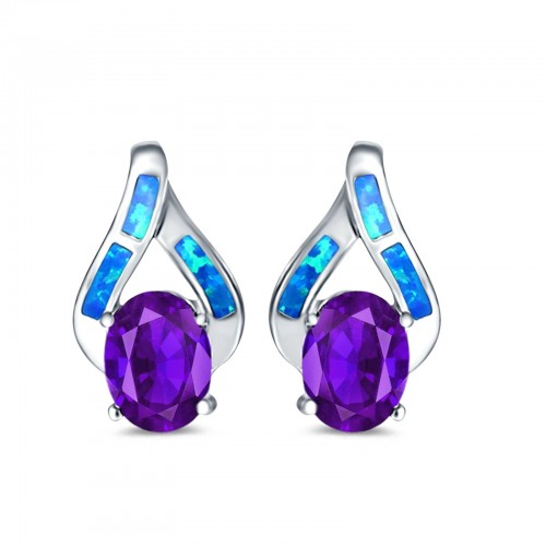 Stud Earrings Lab Created Blue Opal Simulated Amethyst CZ 925 Sterling Silver (16mm)