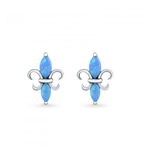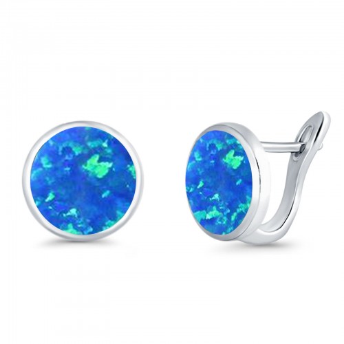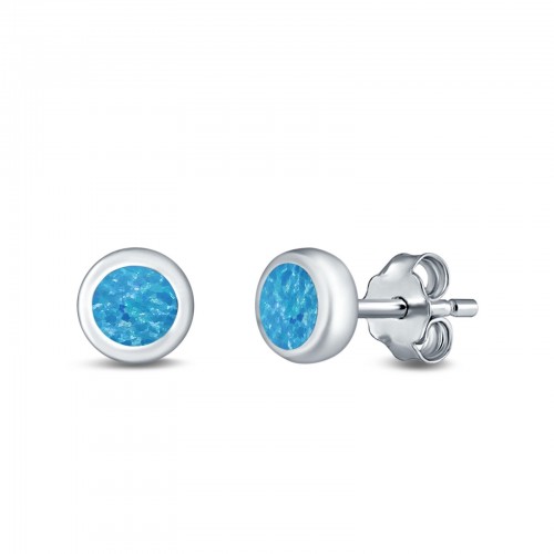 Stud Earrings Lab Created Blue Opal 925 Sterling Silver (6.5mm)