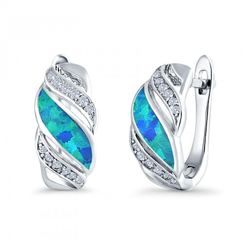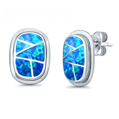 Stud Earrings Lab Created Blue Opal 925 Sterling Silver (18mm)