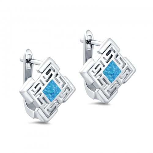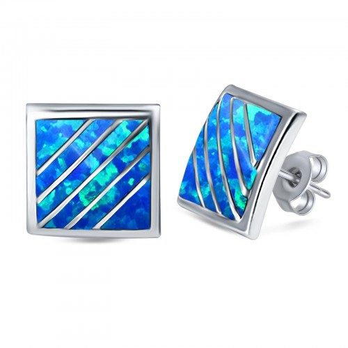Stud Earring Square Shape Lab Created Blue Opal 925 Sterling Silver (13mm)