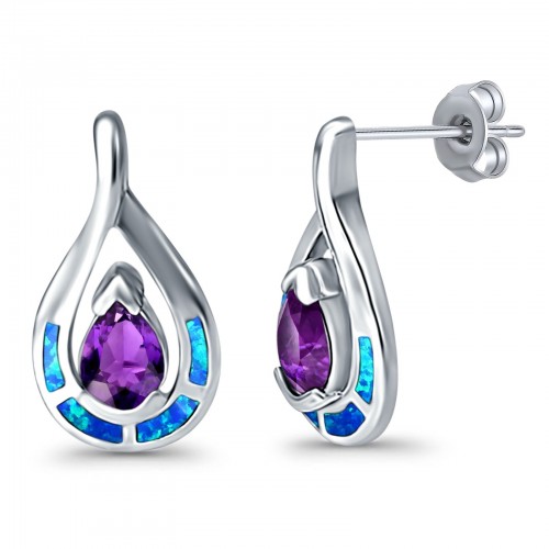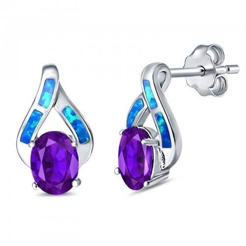 Stud Earrings Lab Created Blue Opal Simulated Amethyst CZ 925 Sterling Silver (16mm)