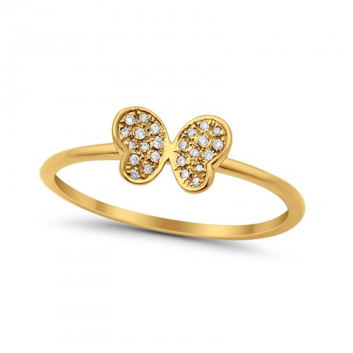 14K Pave Set .05ct Diamond Rings Yellow Gold Butterfly Size 6.5