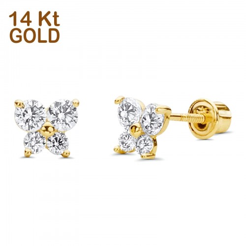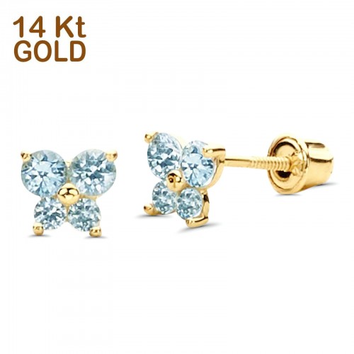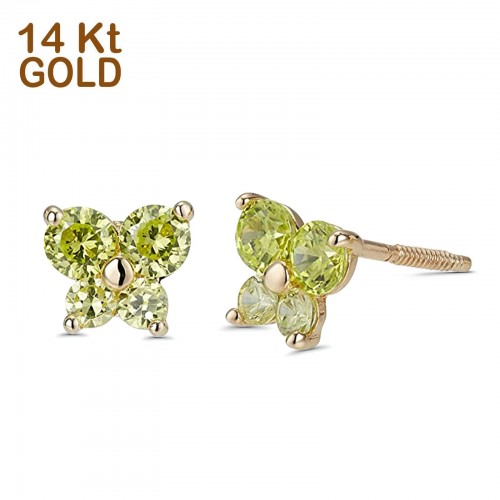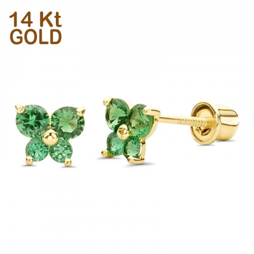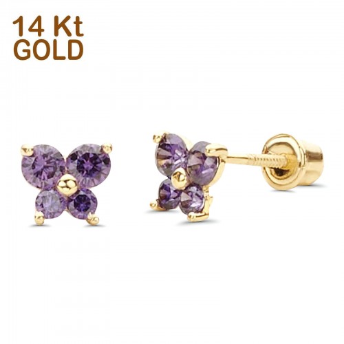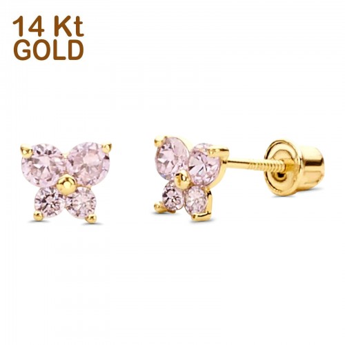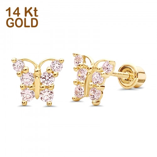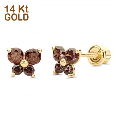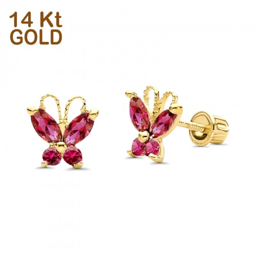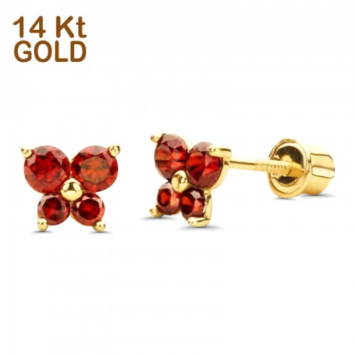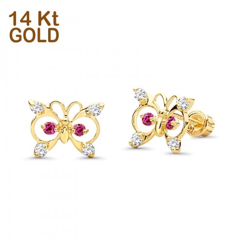 14K Yellow Gold Ruby CZ Butterfly Stud Earrings with Screw Back – Best Birthday Gift for Her
