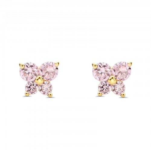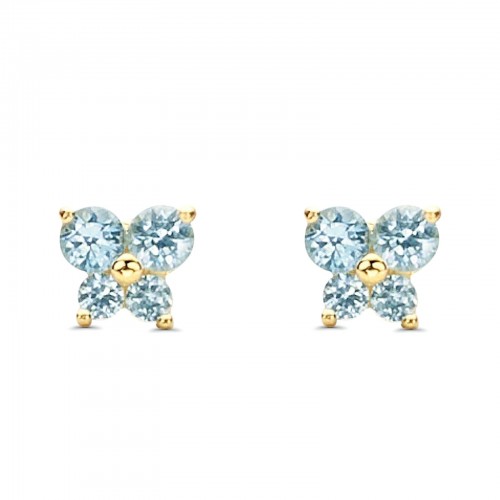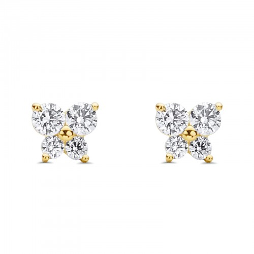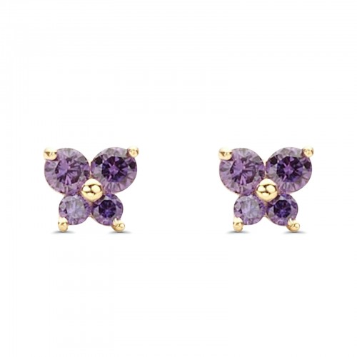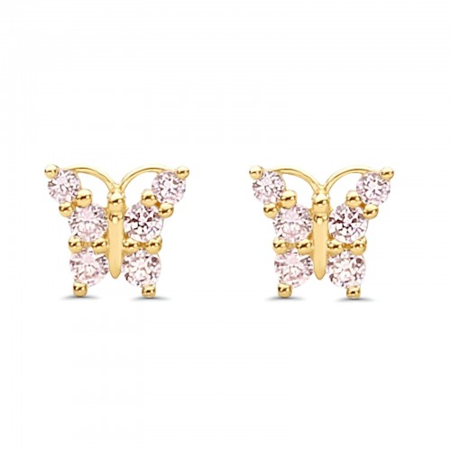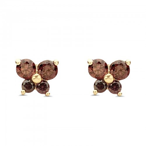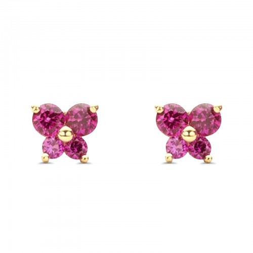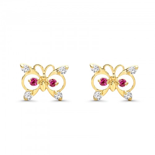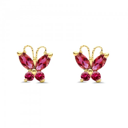 14K Yellow Gold Ruby CZ Butterfly Stud Earrings with Screw Back – Best Birthday Gift for Her