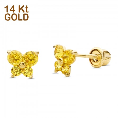 3gm Tricolor Gold 14K Real Cubic Zirconia Butterfly Charm Pendant 17X19mm