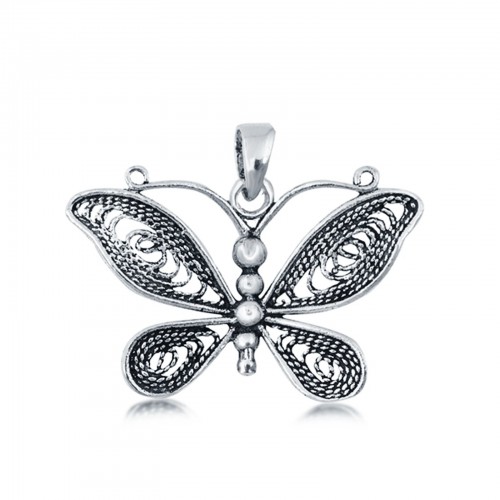 3gm Tricolor Gold 14K Real Cubic Zirconia Butterfly Charm Pendant 17X19mm