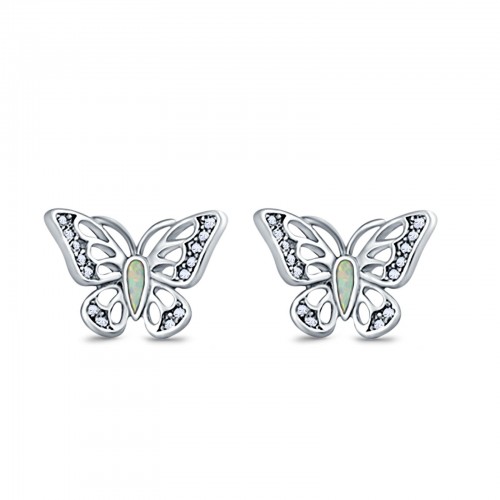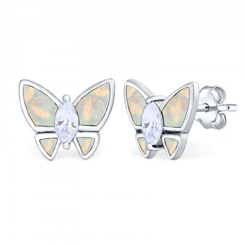 Butterfly Stud Earrings Lab Created White Opal 925 Sterling Silver (8mm)