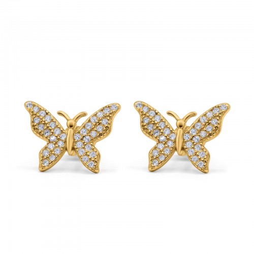 Butterfly Stud Earrings Yellow Tone, Simulated CZ 925 Sterling Silver (14mm)