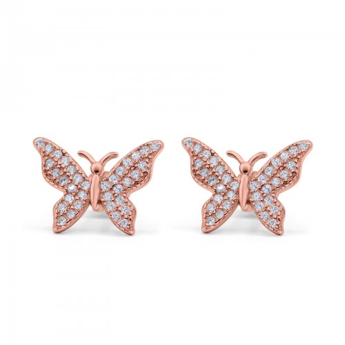 Butterfly Stud Earrings Rose Tone, Simulated CZ 925 Sterling Silver (14mm)