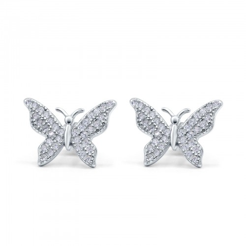 Butterfly Stud Earrings Simulated Cubic Zirconia 925 Sterling Silver (14mm)