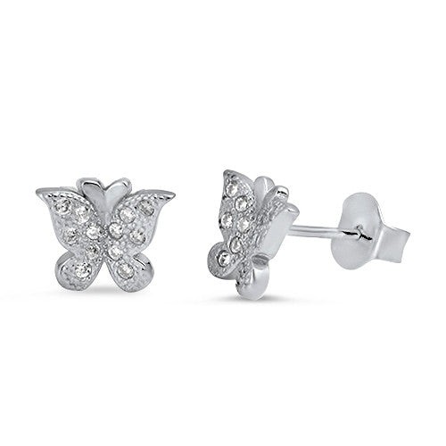 Butterfly Stud Earrings Simulated Cubic Zirconia 925 Sterling Silver (14mm)