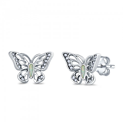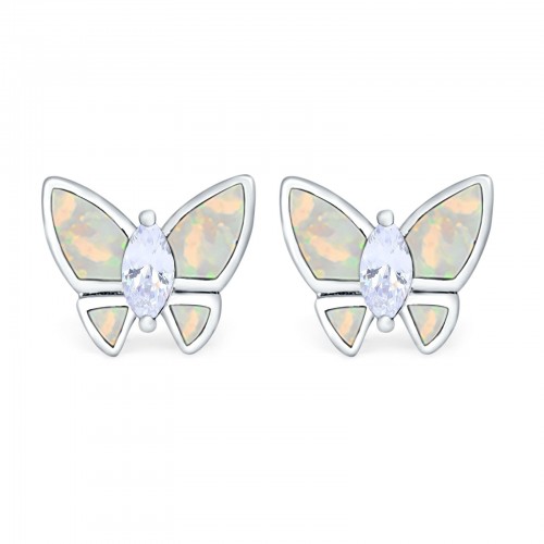Butterfly Stud Earrings Lab Created White Opal 925 Sterling Silver (8mm)