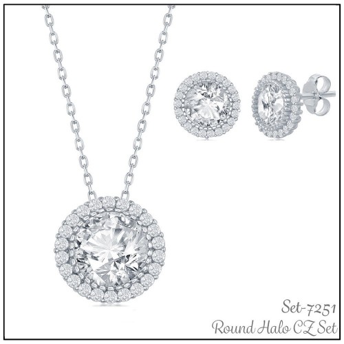 Sterling Silver 12mm & 10mm Round Halo CZ Necklace and Earrings Set