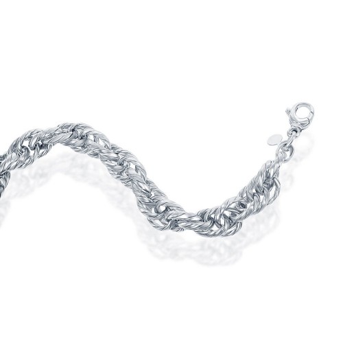 Sterling Silver Stripped Multi-Oval Linked Bracelet, MADE IN ITALY