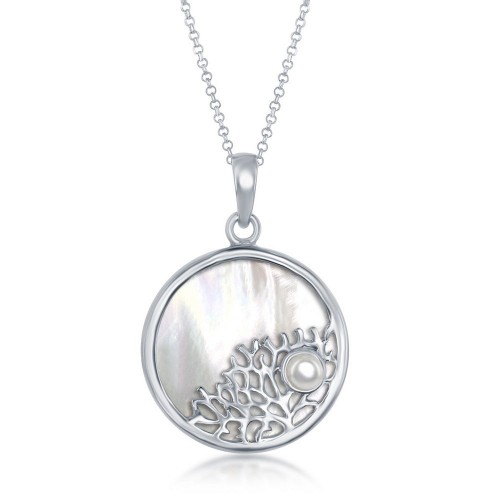 Sterling Silver Tree Branch with Small Pearl Round Pendant – MOP