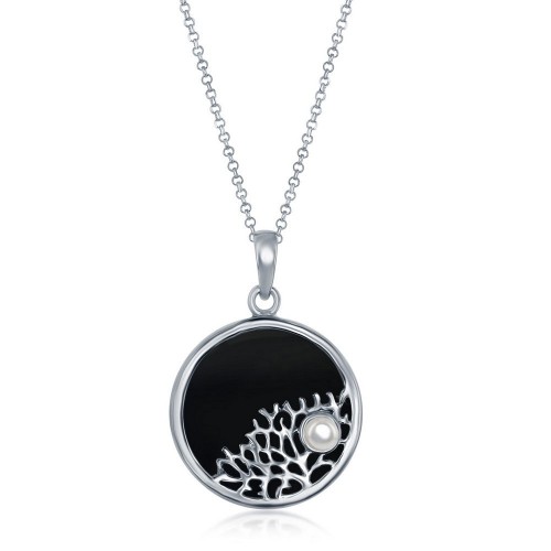 Sterling Silver Tree Branch with Small Pearl Round Pendant – Onyx