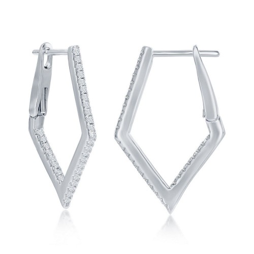 Sterling Silver Ultra-Thin 30mm Hoop CZ Earrings – Diamond-Shaped