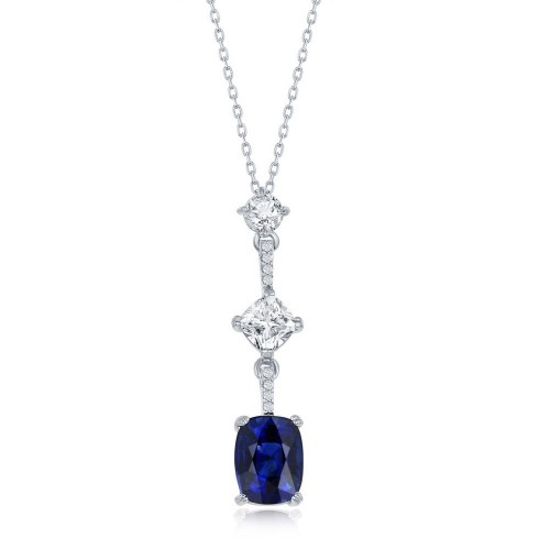 Sterling Silver White CZ and Sapphire CZ Baguette Circle Necklace