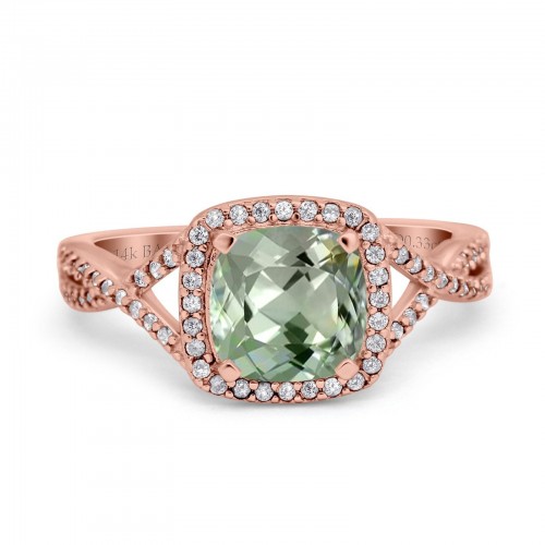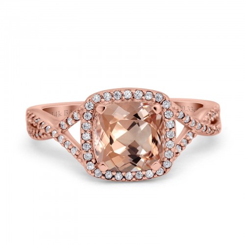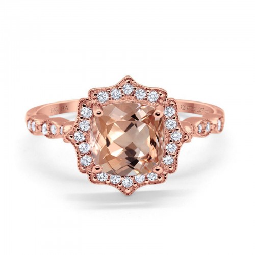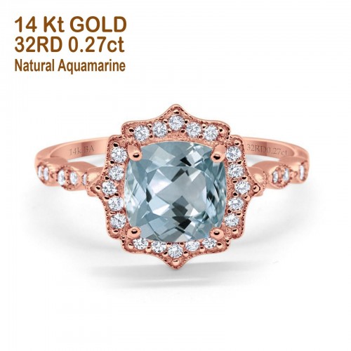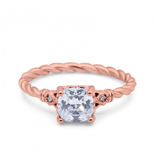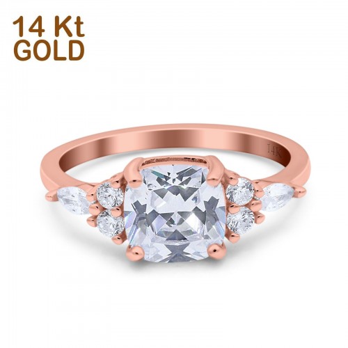 14K Rose Gold Cushion Cut Art Deco Bridal Wedding Engagement Ring Simulated CZ Size-7 14K Gold