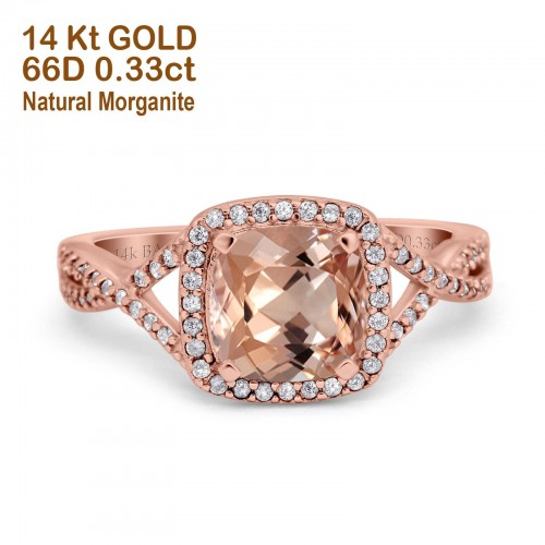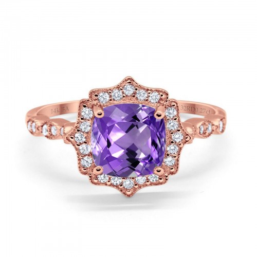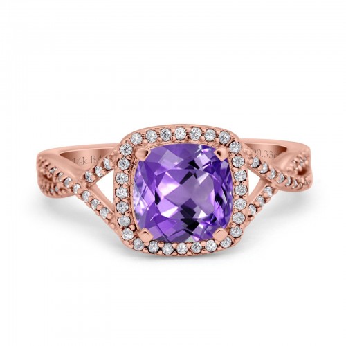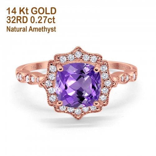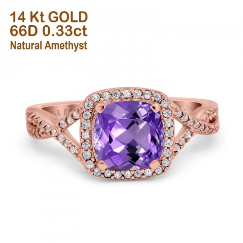 14K Rose Gold 2.31ct Cushion 8mm Halo G SI Natural Amethyst Diamond Engagement Wedding Ring Size 6.5