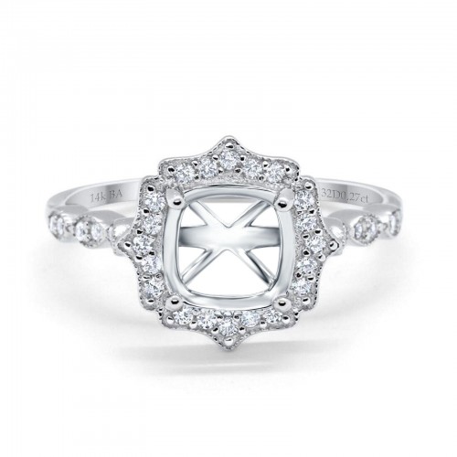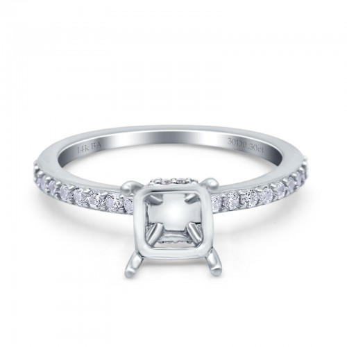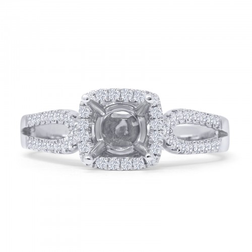 14K White Gold 0.43ct Cushion Halo Split Shank Semi Mount Diamond Ring Wholesale 6.5