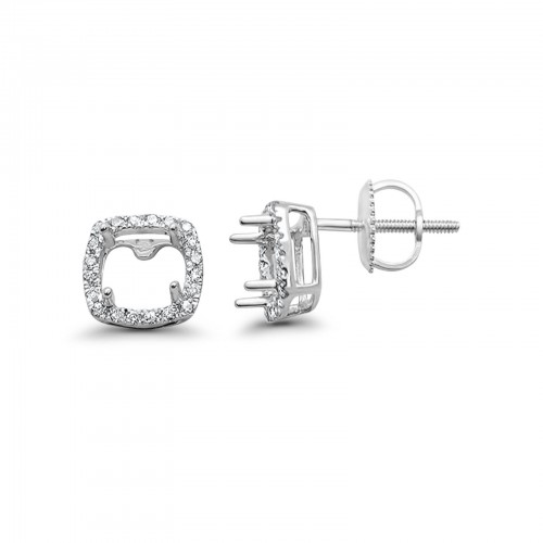 14k White Gold .18ct Cushion Square Diamond Earring Semi-Mount