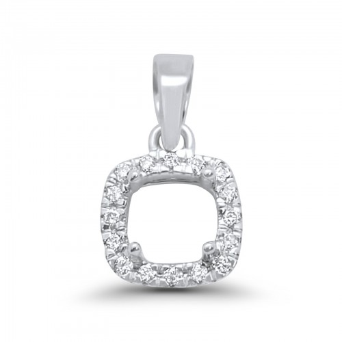 14K White Gold .06ct Square Cushion Diamond Semi Mount Pendant