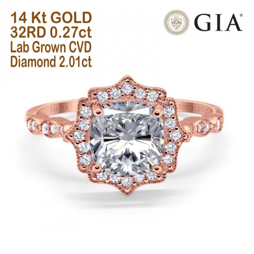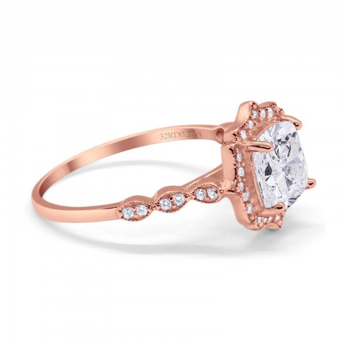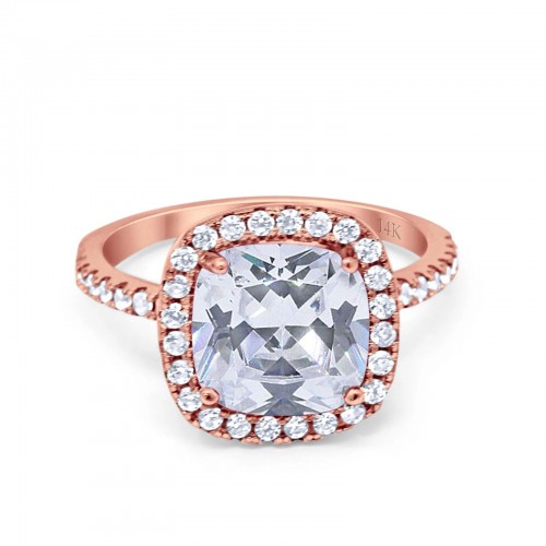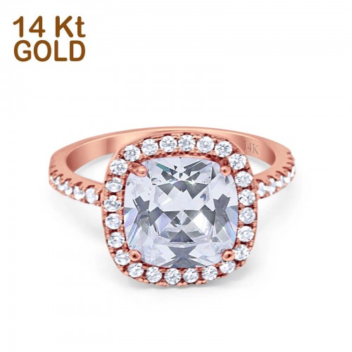 14K Rose Gold Halo Cushion Bridal Simulated CZ Wedding Engagement Ring Size 7 14K Gold