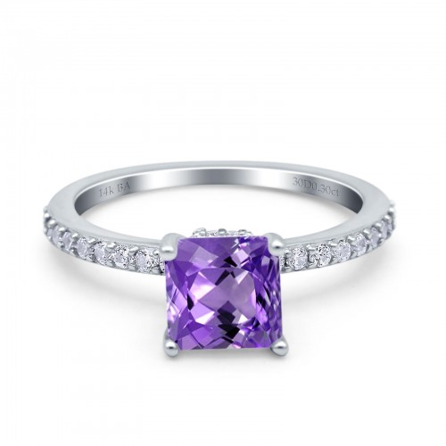 14K White Gold 0.27ct Halo Cushion 8mm G SI Semi Mount Diamond Engagement Wedding Ring Size 6.5