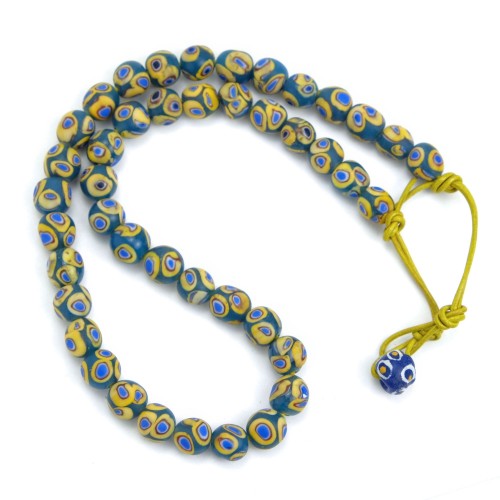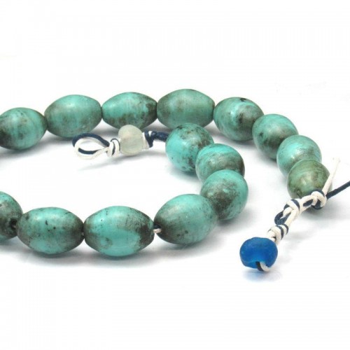 Early 20th C. Chinese Hand Wound Glass Trade Beads / Necklace Turquoise Color 1