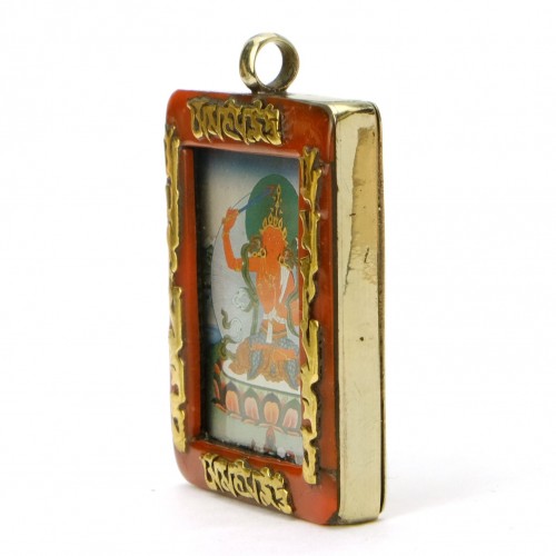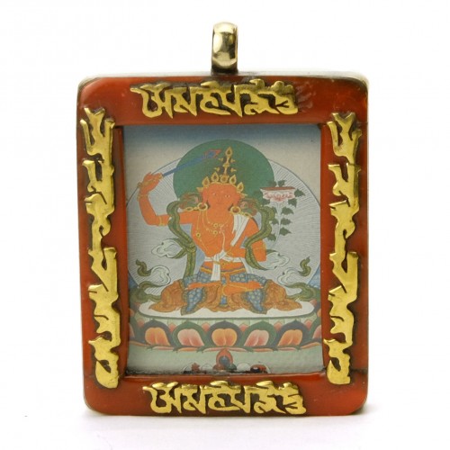 Tibetan Deity Manjushri Pendant Blue Howlite Border with Ohm Mani Padme Ohm Verse # 43 – 4